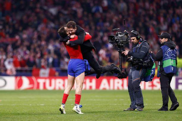 当劳塔罗罚失本队最后一个点球,马竞主场大都会球场陷入彻底的沸腾,全场球迷第五次集体举起手里的围巾,高声唱响马竞队歌,而这一次无疑是最幸福的一次。之前的四次分别发生在比赛开始前的例行高唱队歌环节,以及常规时间快结束时为球队的加油鼓劲,加时赛上半场结束后,马竞队歌再一次响彻全场,点球大战开始前,全场球迷再度集体高唱队歌。而在点球大战期间国米球员走上前主罚点球时,响彻全场的嘘声给足了对手压迫感,如此压力之下,桑切斯与克拉森的点球均被奥布拉克扑出,劳塔罗非进不可的点球更是直接飞上了看台。